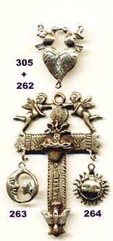 Set includes cross, sun and moon dangles, and center in either bronze or sterling.